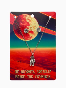 Гарнитур 2 предмета: кулон, серьги «Космонавт», цвет чернёное серебро, 41 см