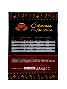 Электрический чайник "Матрёна" MA-002 — это мощное устройство с потребляемой мощностью 1500 Вт, обеспечивающее быстрое кипячение воды. Чайник оснащён функцией автоматического отключения, которая срабатывает при достижении воды кипения, гарантируя безопасность эксплуатации и предотвращая перегрев. "Матрёна" MA-002 сочетает в себе стильный дизайн, удобство и надежность, делая его отличным выбором для вашего дома или офиса.