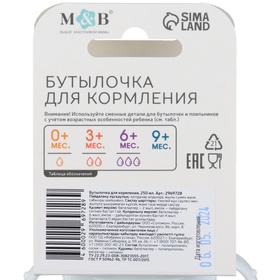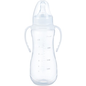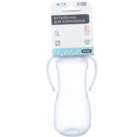 Бутылочка для кормления малыша M&B, классическое горло, с ручками, от 3 мес., 250 мл., белая