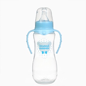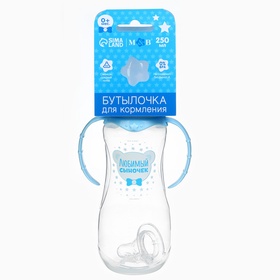 Бутылочка для кормления M&B «Любимый сыночек», классическое горло, с ручками, от 0 мес., 250 мл., приталенная, голубой