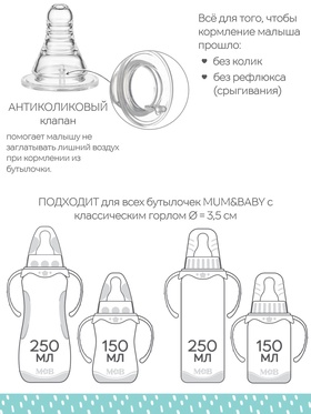 Соска на бутылочку M&B «Anti-colic», антиколиковая, классическое горло, от 6 мес., быстрый поток, 2 шт.
