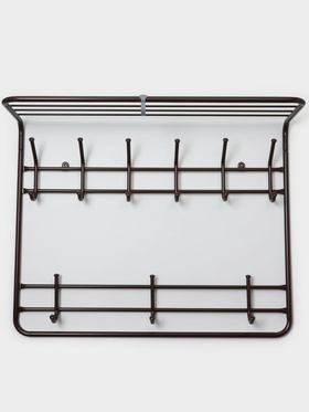 Вешалка настенная с полкой, 9 крючков, 2 яруса, 73×22×58 см, коричневая