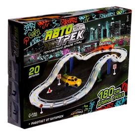 Автотрек «Граффити», в наборе 1 машина и дорожные знаки, длина трассы 180 см, работает от батареек, 20 деталей