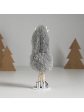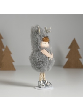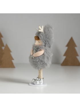 Интерьерная кукла текстильная «Малышка в серой мохнатой шубке в шапке с рожками», 5.6×6×14 см