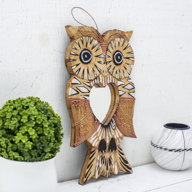 Зеркальное панно «Сова с сердцем», 1.3×14×24 см, дерево
