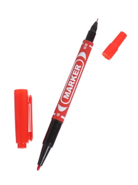 Маркер перманентный, красный, двухсторонний, узел 2.0 мм/0.7 мм