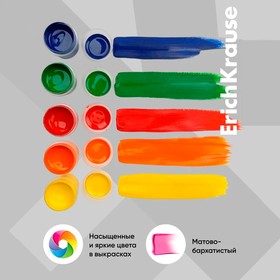 Гуашь ErichKrause®. Рисунки, выполненные такими красками, дольше сохраняют сочные цвета. Гуашь обладает насыщенными плотными цветами с высокой укрывистостью, при рисовании ровно ложится на бумагу и быстро высыхает, после высыхания рисунок приобретает матово-бархатистую поверхность.