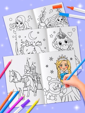Набор раскрасок «Мои любимые картинки» объединил в себе всё, что так нравится девочкам. Малышке предстоит создать стильные образы принцессам, разрисовать волшебных зверей и домашних питомцев, наполнить цветом сказочный мир Русалочки и Снежной королевы.