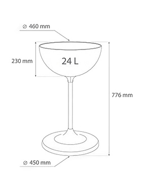 Состоит из прозрачной пластиковой чаши объемом 24 литров; металлической опорной «ноги» и устойчивого пластикового основания. Чаша для выкладки является цельнолитой, что гарантирует её долгую эксплуатацию.
