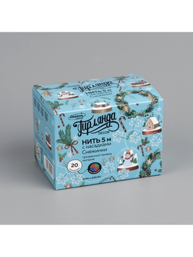 Гирлянда «Нить» 5 м с насадками «Снежинки», IP20, прозрачная нить, 20 LED, свечение мульти (RG/RB), мигание, 220 В
