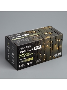 Гирлянда «Бахрома» 3×0.6 м, IP44, УМС, тёмная нить, 160 LED, свечение тёплое белое, 220 В