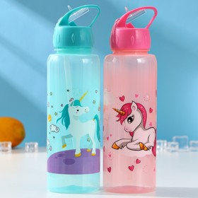 Бутылка для воды «Единороги», с трубочкой, 850 мл, МИКС