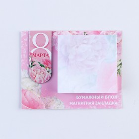 Магнитная закладка и блок бумаги «С 8 Марта», размер 7 см × 9 см, 30 листов.