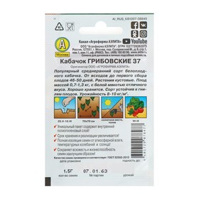 Семена Кабачок белоплодный «Грибовские 37», 8 шт., «Аэлита»