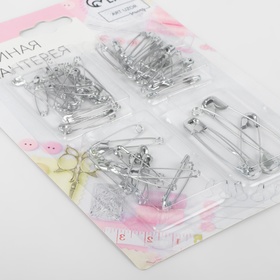 Набор булавок английских, 27 / 32 / 42 / 55 мм, 60±5 шт., цвет серебряный
