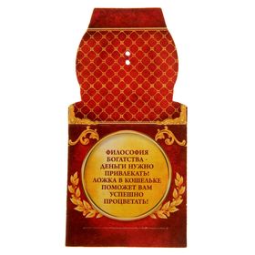 Ложка загребушка "Денежная" — изделие, которое будет защищать и приумножать ваши доходы. Чтобы активировать его, положите сувенир в кошелёк или сумочку и произнесите несложный заговор, указанный на упаковке.